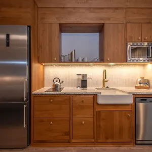Certain rooms have a stone fireplace along with a sofa and a work desk for guests' convenience. They come equipped with a microwave oven and a fridge. Bathrooms include a Jacuzzi bath, a separate toilet and a shower, along with comforts such as a hairdryer and a shower cap. Looking onto the street, the suite features kitchenette with a microwave oven, a fridge and kitchenware.