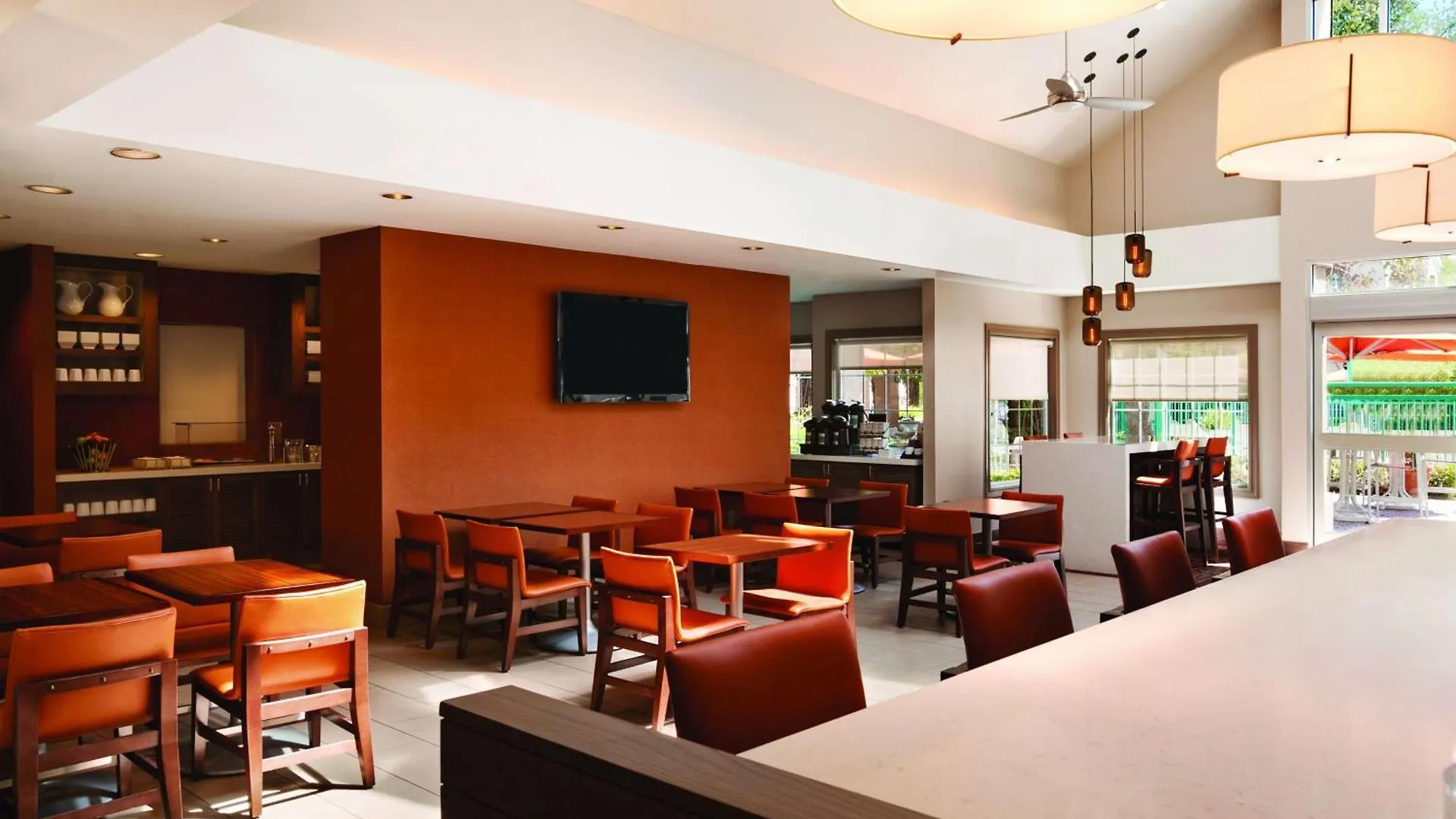 In the Hyatt House you will be treated to a complimentary buffet breakfast daily. The property is set right at the bakery Big Apple Bagels.