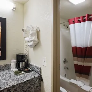 The rooms at the comfortable Red Roof Inn Oklahoma Airport I 40 W Fairgrounds are fitted with carpeted floors and such comforts as ironing facilities and climate control. Some of the spacious units also come with a microwave and a mini fridge.